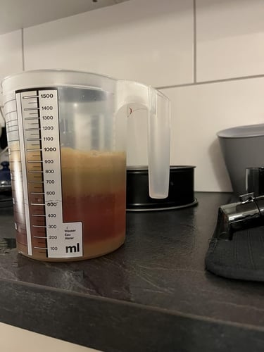 So guten Apfelsaft hatte ich zu Hause noch nie. Der Entsafter holt wirklich viel aus dem Obst: Aus ungefähr 2 kg Äpfeln habe ich fast 1 l gewonnen. Bei längeren Sessions wird der Motor etwas warm – daher gönne ich ihm zwischendurch kurze Pausen. Nächster Test: Traubensaft, darauf freue ich mich schon.